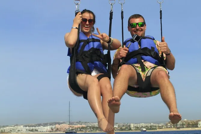 You’ll feel your heart race as you rise above Cabo San Lucas Bay on this parasailing tour, floating quietly past Land’s End and Medano Beach with local guides handling every detail. Expect laughter on deck, salty air on your skin, and views that linger long after you land — all with safety gear included.