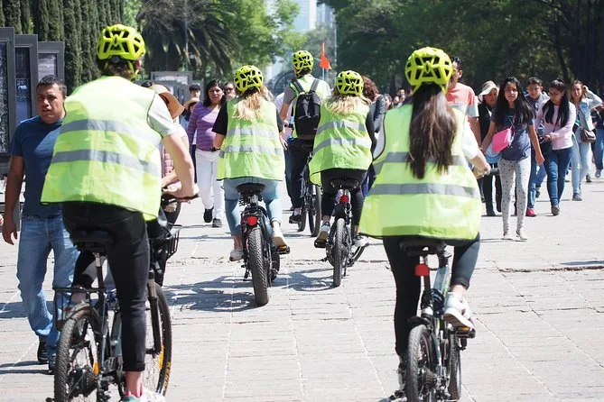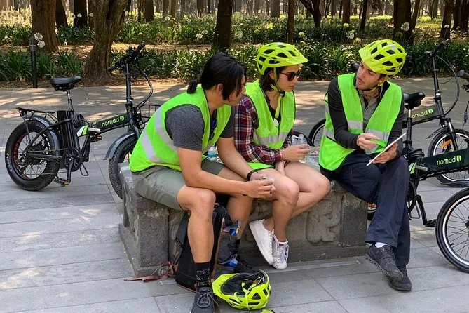 Your day includes use of top-notch e-bikes with helmet and vest for safety, plenty of traditional Mexican snacks (vegetarian options too), local beverages along the way, guidance from fun local guides who share city stories as you ride, plus an interactive map packed with recommendations for exploring more of Mexico City after your tour ends.