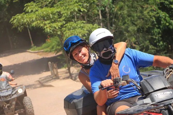 Your day includes use of an ATV with fuel covered plus helmet, goggles, face mask and bandana for comfort and safety throughout your ride. A private local guide leads your group along mountain trails with flexible stops before finishing with a tequila tasting session at a local spot near Puerto Vallarta.