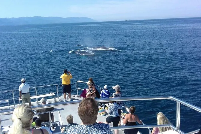 Your day includes sailing aboard a comfortable catamaran with live local commentary in English or Spanish; continental breakfast; chips; vegan ceviche; ham-and-cheese paninis; marlin burritas; an international open bar; plus plenty of shaded seating while you watch whales play in Banderas Bay before heading back to shore.