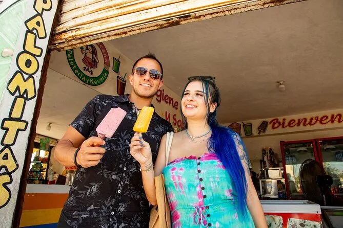 You’ll taste aguas frescas, mole enchiladas, birria stew, sopes with carnitas, tacos with various fillings, and paletas (ice pops).