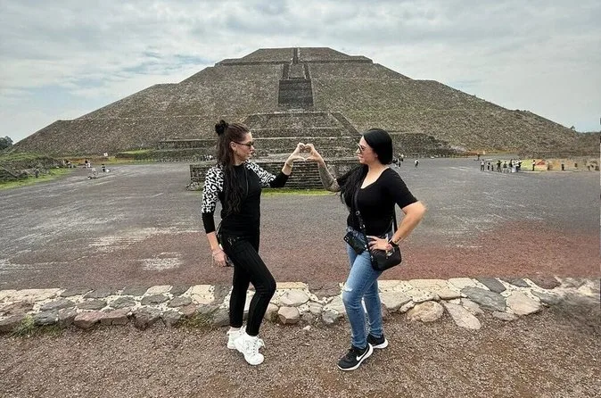 Yes—a local guide leads you through key sites at Teotihuacan as part of the full package.