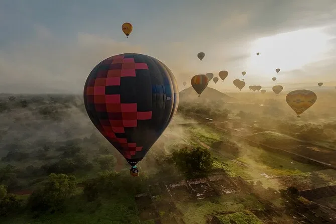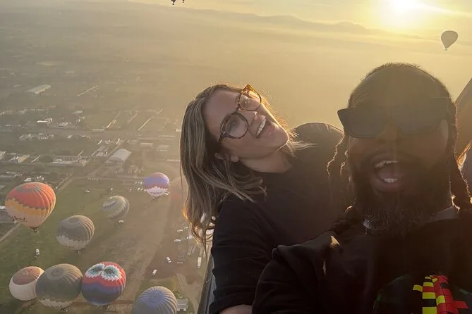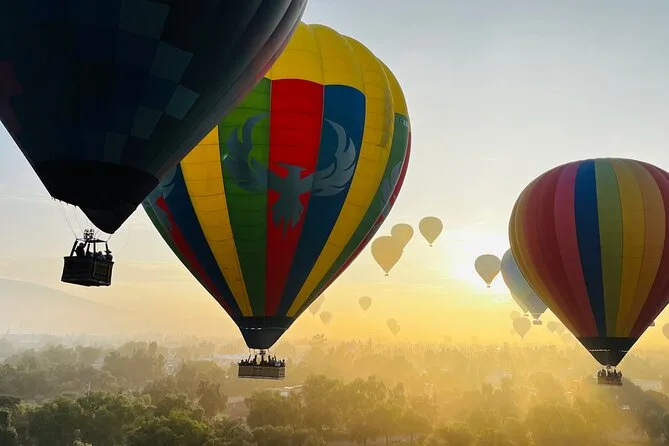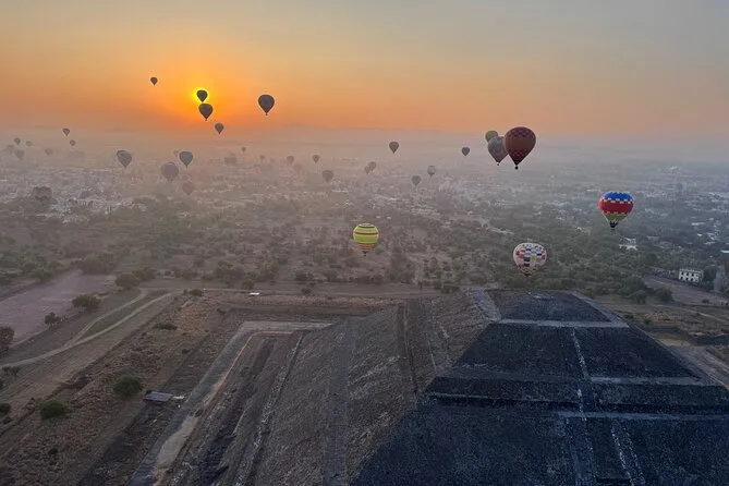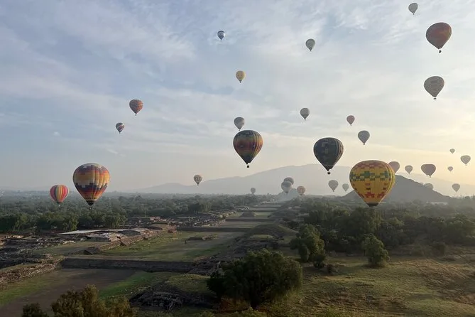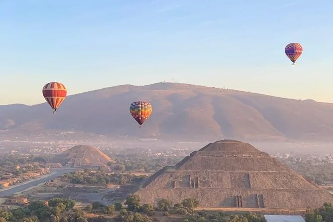 Your day includes early morning hotel pickup from Mexico City (if chosen), fresh coffee on arrival while your balloon is prepared, a sunrise hot air balloon flight over Teotihuacan with an experienced pilot, post-flight toast and certificate, buffet breakfast inside a cave restaurant, entry to an artisan obsidian and maguey workshop with spirit tasting, plus free time at Teotihuacan’s archaeological zone before returning by midday.