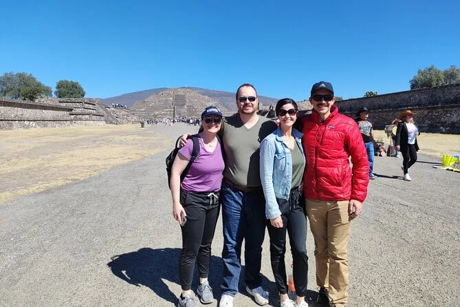 The guided tour at Teotihuacan lasts about 1.5 hours; total trip time including transport is several hours depending on traffic.