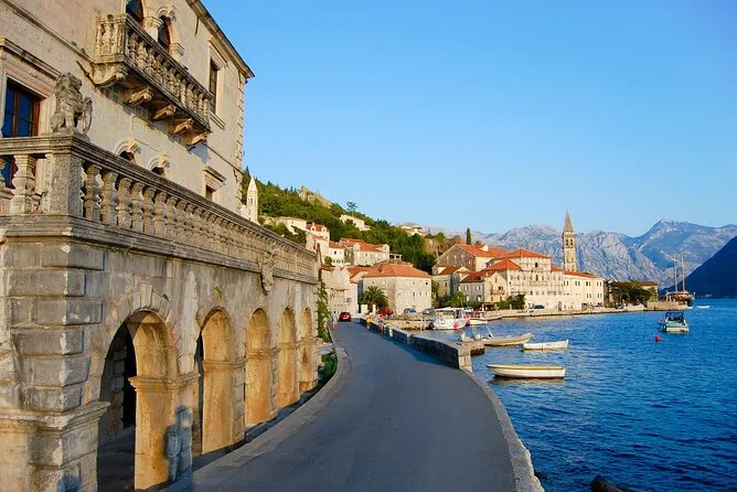 The tour begins in Perast before heading by boat to Our Lady of the Rocks and then continues to Kotor Old Town.