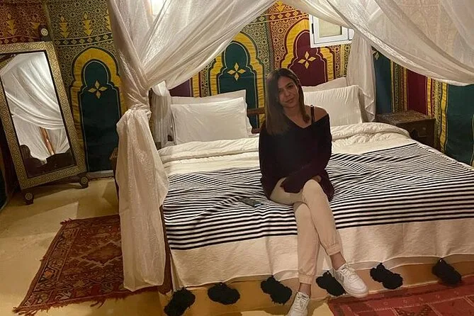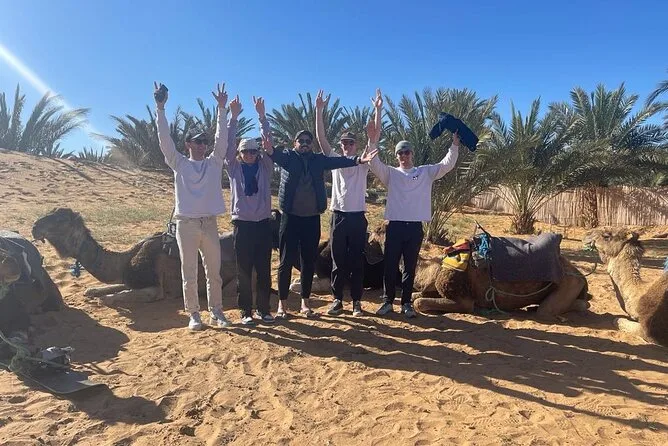 Your tour covers dinner and breakfast, a private luxury tent with attached bathroom at our desert camp, air-conditioned transport from Fes, camel trekking across Erg Chebbi dunes (with sand skiing if you’re up for it), plus plenty of stops along the way for photos and snacks. All ages welcome—including infants or wheelchair users—and our guides are always happy to help make things easy.