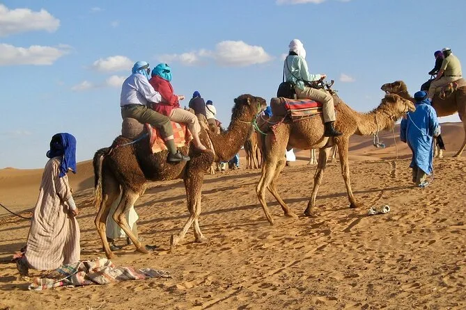This shared experience covers transport from Fes to Marrakech with an English-speaking driver/guide, camel ride in Merzouga, one night in a luxury tent (private if booking for two or more), one night at a hotel with pool in Ouarzazate area (air conditioning included), breakfasts and dinners throughout the journey—all arranged so you can just enjoy Morocco’s landscapes and culture without stress.