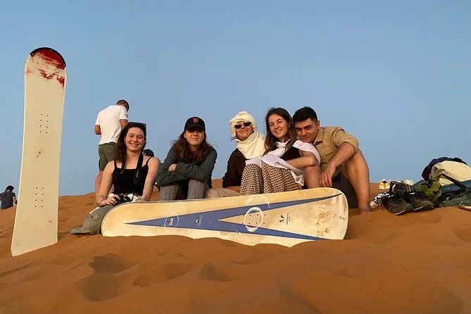 Your tour covers hotel pickup/drop-off in Marrakech and Fes, all transport in an air-conditioned vehicle, guided visits at major stops (like Ait Ben Haddou), overnight stays in both a Rose Valley hotel and a Merzouga desert camp (with dinner and breakfast), plus sand boarding fun and camel trekking through Sahara dunes.