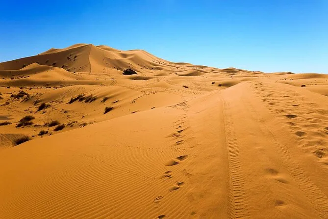Your stay covers hotels in Dades and Ouarzazate plus a luxury desert camp in Merzouga (with real beds). Camel trek (one per person), sandboarding gear, air-conditioned transport with an English-speaking driver/guide are all included too.