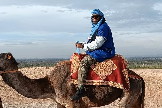 The first thing that hit me stepping out of the van was the dry, earthy scent of the Agafay Desert—nothing like the city air back in Marrakech. Our guide, Youssef, handed us these light blue nomad scarves and showed us how to wrap them around our heads. It felt a bit silly at first, but honestly, it kept the sand out of my mouth once we got moving. The camels were waiting nearby, chewing lazily on some scrubby grass. Climbing on was easier than I thought, though the camel’s first lurch forward nearly made me drop my phone.