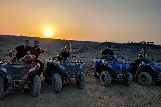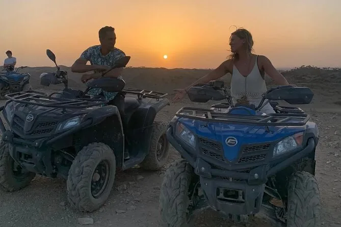 Back at the quad base, we got a quick rundown on how to handle the ATVs—nothing complicated, but they made sure everyone felt good before heading out. Once we started up, it was pure freedom. The sun was starting to dip, painting everything gold and pink. We stopped at a small nomad tent for mint tea with a local family. The tea was sweet and hot, poured high into little glasses, and I remember the way the steam curled up in the cool air. It’s one of those moments you want to freeze.