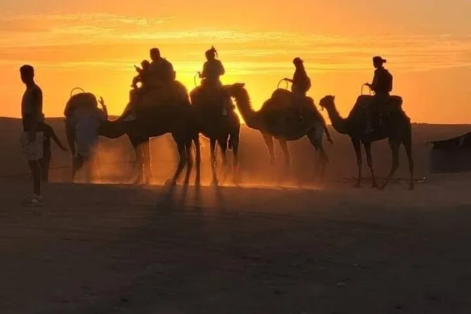 Comfortable clothes are best. You'll get traditional Berber outfits to wear over your clothes during the camel ride. Closed shoes are a good idea.