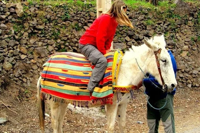 The drive through the valleys is something else—patches of green fields, tiny villages clinging to hillsides, kids waving as we passed by. In Imlil Valley, we met our mule team (the mules have names; mine was called Aicha). The ride up to the waterfalls is gentle but you feel every step under your seat. Water trickled down over mossy rocks—nothing huge, but after the dry air it felt refreshing just to dip your hands in.