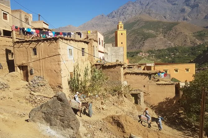 This tour covers breakfast with a local Berber family, short camel ride, guided transport through valleys, mule trek or hike to waterfalls, traditional lunch at a mountain home, one hour of quad biking on Kiki plateau, plus return transfers to your accommodation in Marrakech.