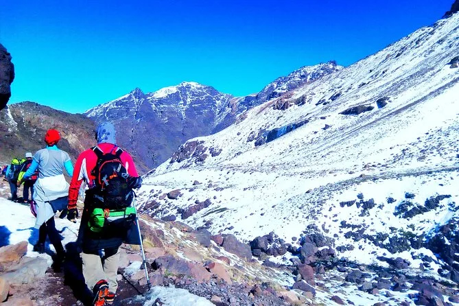 Your trip includes pickup and return transport from Marrakech, all meals (breakfast and dinner), overnight accommodation at Toubkal Basecamp, plus guidance throughout by an experienced local mountain guide.