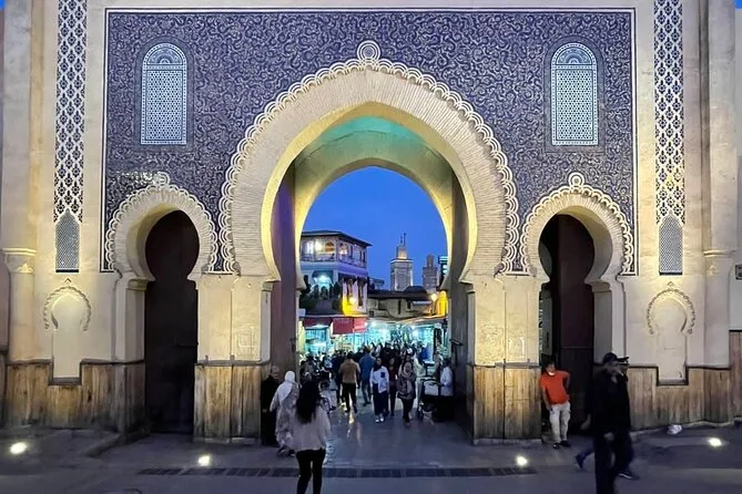 You’ll visit Bab Boujloud gate, Kairaouine Mosque (from outside), Bou Inania Madrasa, Chouara Tannery, Nejjarine Museum, Mellah (Jewish Quarter), Royal Palace gates, and more.