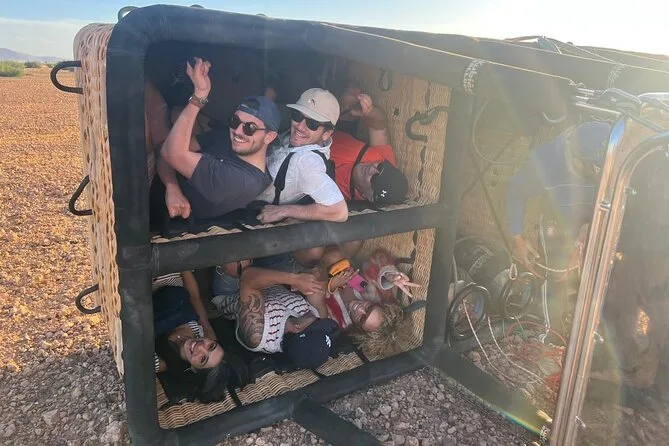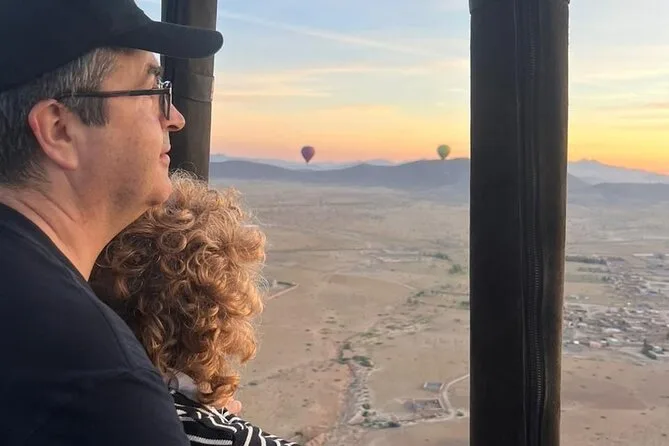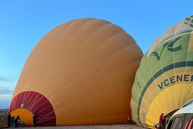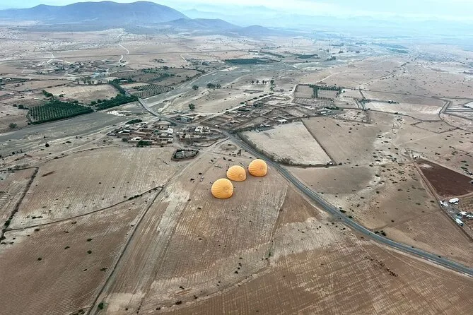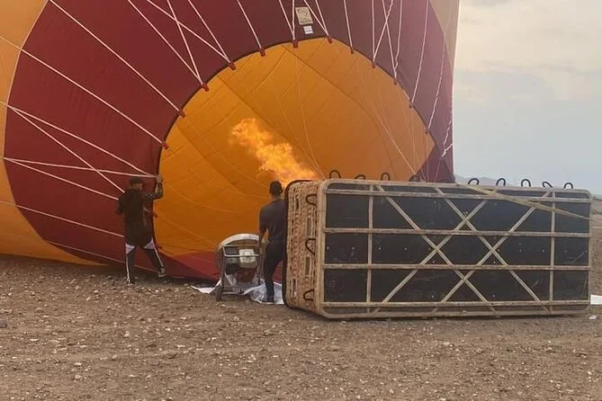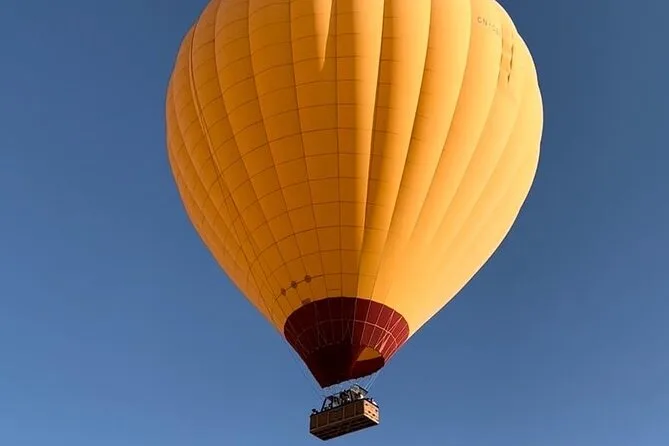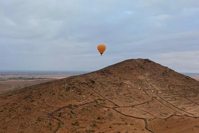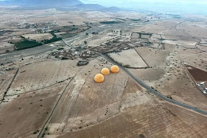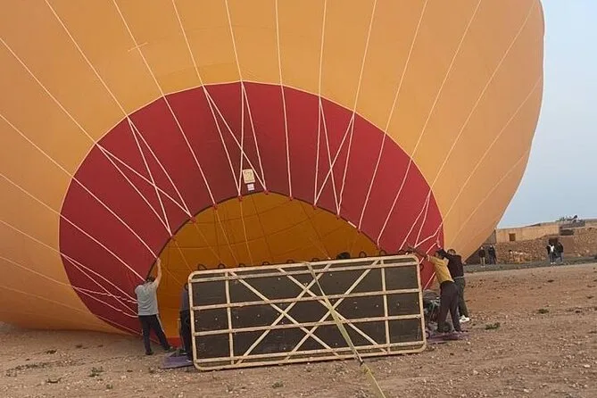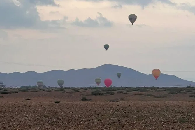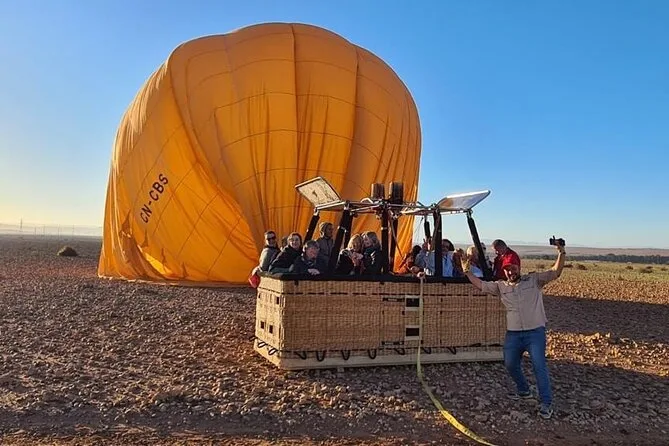 Your day includes hotel pickup and drop-off from Marrakech, coffee or tea before takeoff, about 45 minutes soaring over the Atlas Mountains by hot air balloon with refreshments on landing, a freshly made Berber breakfast served in a desert tent, bottled water throughout, a camel ride through palm groves nearby, and even a flight certificate as a keepsake before heading back to town.