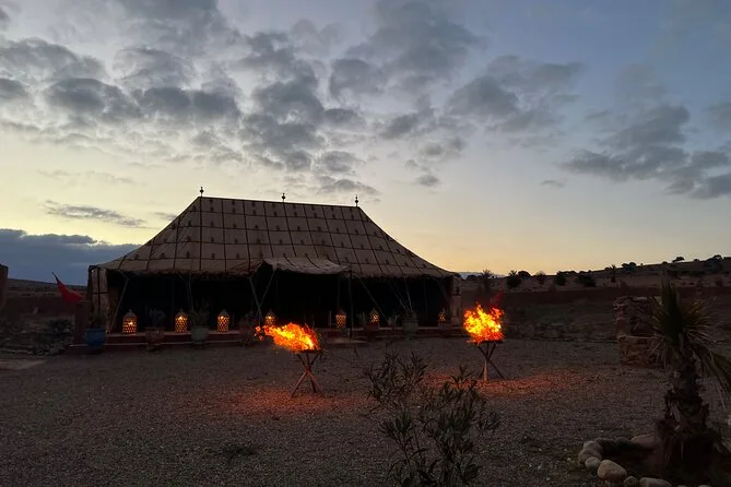 A freshly prepared Berber breakfast is served in a tent after landing.