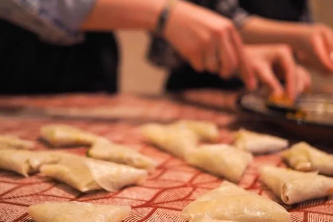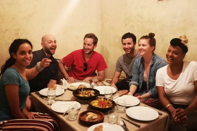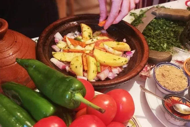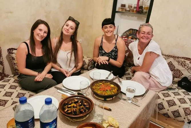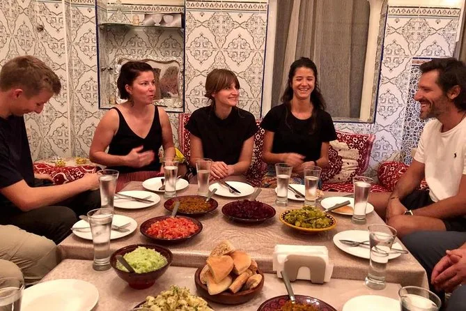 Your day includes bottled water throughout the experience, ingredient shopping at neighborhood markets (for morning sessions), hands-on cooking instruction from Najla in her Marrakech home, plus homemade Moroccan tea and pastries shared around her kitchen table before enjoying your own meal together.