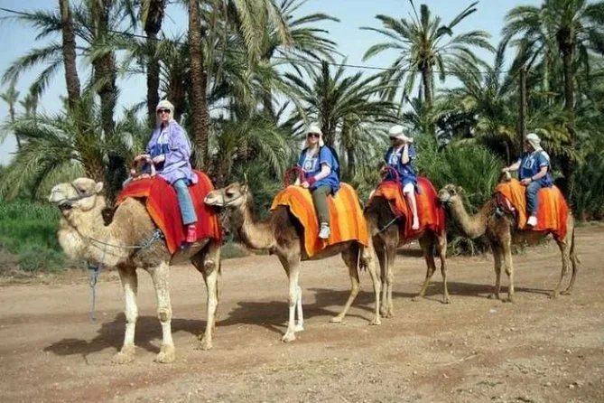 Your half-day includes pickup from your hotel or riad in Marrakech by air-conditioned minivan, guided camel riding through the Palm Grove with stops at Berber villages along the way, plus a relaxing break for traditional mint tea inside a local family’s home before returning to your starting point.
