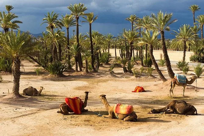 You’ll ride camels through Marrakech’s Palmeraie oasis with a local guide who’ll help you dress in traditional Saharan attire. Along the way, pause for fresh mint tea under shady palms and swap stories with your hosts before heading back to your hotel — it’s a gentle escape from city rush that lingers in memory.