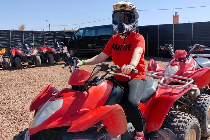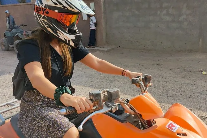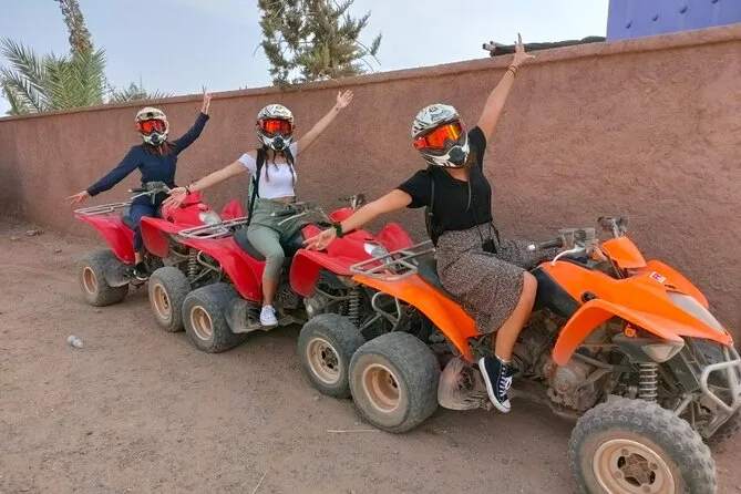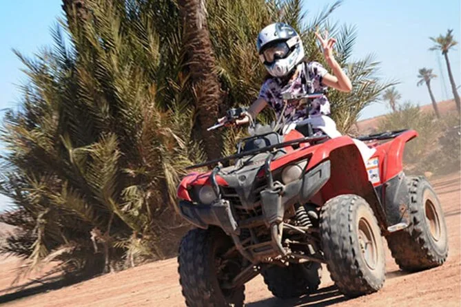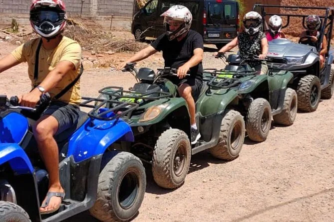 Your day includes hotel or riad pickup by air-conditioned vehicle (or meeting point if needed), all quad biking gear including helmet and goggles for your 1.5-hour ride through Palmeraie’s palm groves with a local guide leading the way, plus time to enjoy mint tea in a Berber village before heading back into Marrakech for full access to a traditional hammam spa session: steam room entry with towel provided, black soap scrub scented with eucalyptus, and finally an argan oil massage before drop-off back at your accommodation.