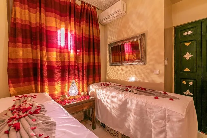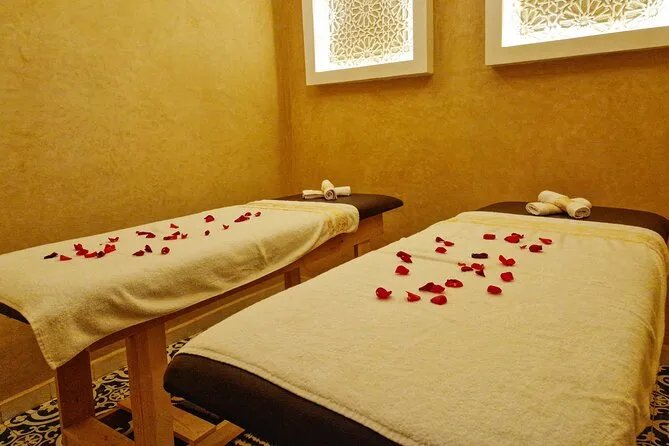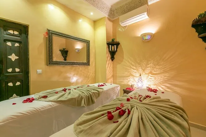 After the quad ride, we drove back into Marrakech’s Medina for the hammam spa part of the day trip. Honestly, I didn’t know what to expect — I’d never done a real Moroccan hammam before. The steam room hit me first: thick air scented with black soap and something herbal (maybe eucalyptus again?). A woman scrubbed my arms with practiced hands; it stung but in a good way, like all the dust from earlier was being erased. The argan oil massage after felt slow and grounding — I still think about how quiet everything got in there compared to outside.