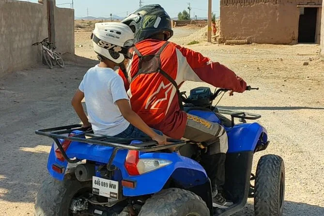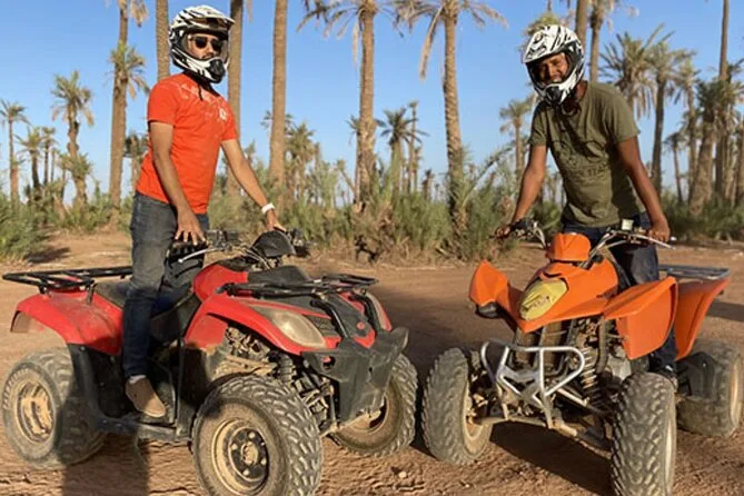 The quad bike ride lasts about 1 hour and 45 minutes through the Palmeraie area.