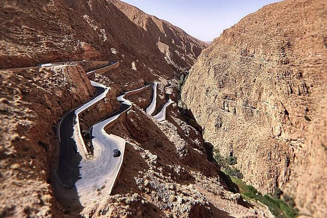 The tour lasts three days with two overnight stays—one in Tinghir or Dades Valley and one in a desert camp near Merzouga.
