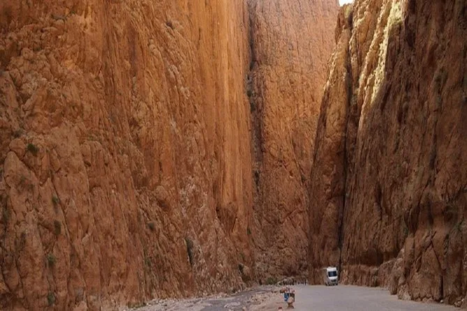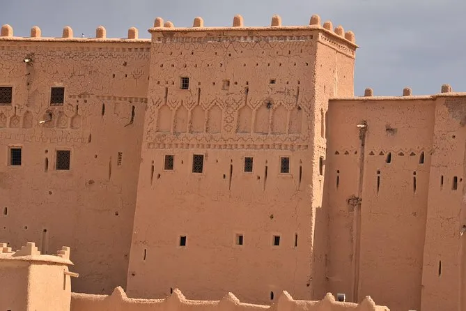 The drive takes about 9-10 hours each way with stops along scenic sites like Ait Ben Haddou and Todra Gorge.