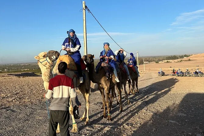 Your day includes hotel pickup and drop-off from Marrakesh by air-conditioned minivan or minibus; one hour each of camel riding (with nomadic dress) and quad biking (with equipment); bottled water and soda; plus a traditional Moroccan dinner with salad, tajine, fruits and Moroccan tea before heading back in the evening.