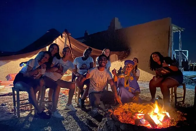 A traditional Moroccan dinner is included: salad, tajine with fruits, Moroccan tea, water and soda.