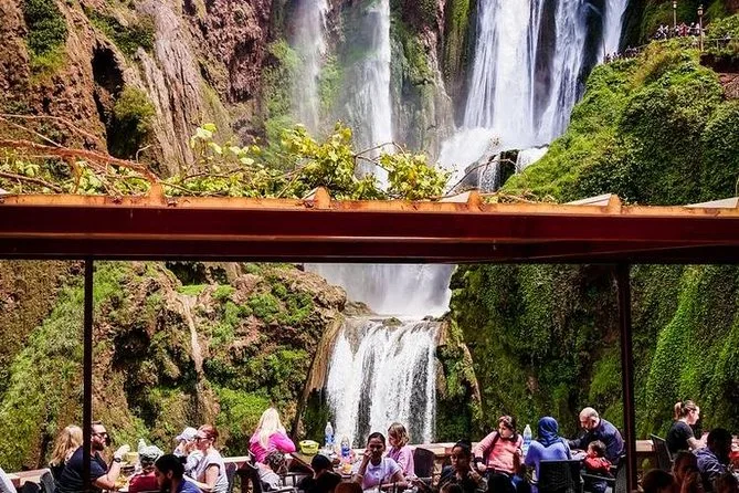 No, but there are several local restaurants by the falls where you can buy traditional Moroccan dishes and drinks.