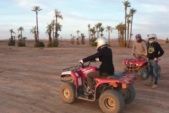 The first thing I noticed stepping out of the van was the dry, earthy scent of the Palmeraie. Our guide, Youssef, handed us helmets and goggles—he joked about the dust, but he wasn’t kidding. Once I got on the quad bike, it took a minute to get used to the throttle, but after that? Pure fun. We zipped past tall palms and little patches of wildflowers that somehow survive out here. The sun felt warm but not too harsh in the late morning; perfect riding weather.