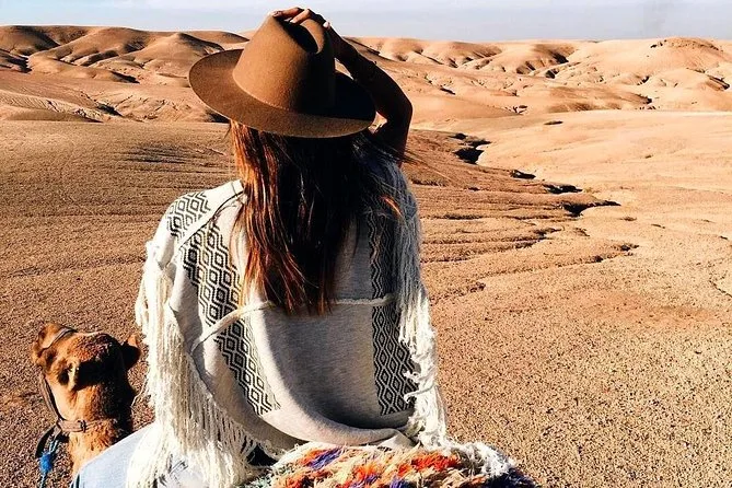 Your evening includes round-trip transport from Marrakech to Agafay Desert, a guided camel ride at sunset, traditional Moroccan dinner around a campfire, mint tea with local sweets, and plenty of time to soak in the desert atmosphere.