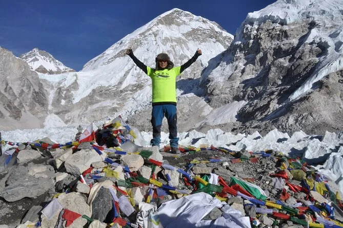 Your journey includes hotel pickup in Kathmandu upon arrival, round-trip flights between Kathmandu and Lukla for easy access to the trailhead, all guided trekking days led by an experienced English-speaking Sherpa guide plus one porter per two trekkers carrying your bags along winding Himalayan paths. You’ll stay overnight in local tea houses on trek days (and comfortable hotels in Kathmandu), enjoy daily meals en route including hearty local dishes, and finish with a warm farewell dinner back in Kathmandu after returning from Everest Base Camp.