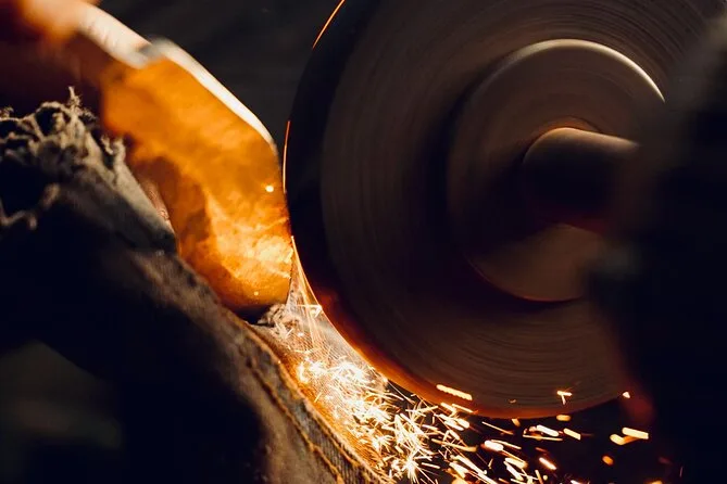 You’ll help with hammering iron into shape, first grinding (with guidance), plus buffing and polishing your knife.