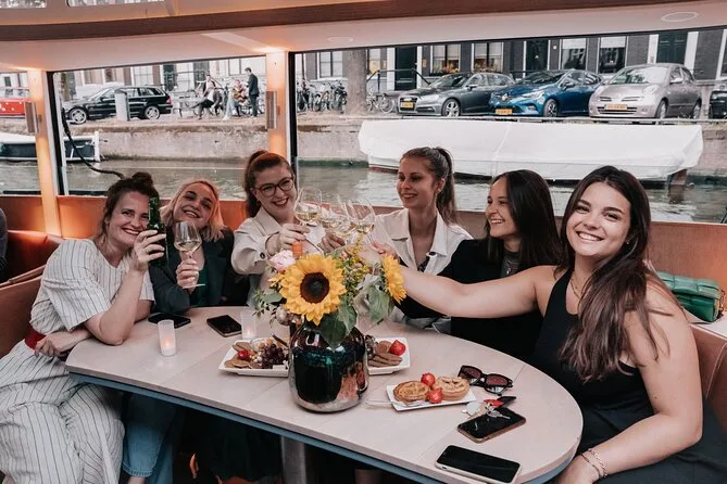 Your day includes a two-hour small group canal cruise through Amsterdam’s historic waterways starting from Jordaan district, unlimited drinks from an open bar (local craft beers, European wines, soft drinks), a Dutch snack platter with cheeses and olives, live guiding by your captain or host throughout the journey—and all taxes and fees are covered so you can just relax into it all.