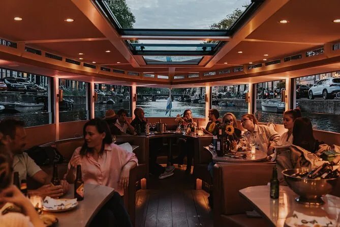 Your evening includes three drinks from an extensive bar—think handpicked European wines or local craft beers—plus a Dutch cheese board served as you relax onboard with your small group. A friendly local host or captain shares stories throughout your journey before returning to your starting point in central Amsterdam.