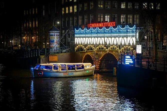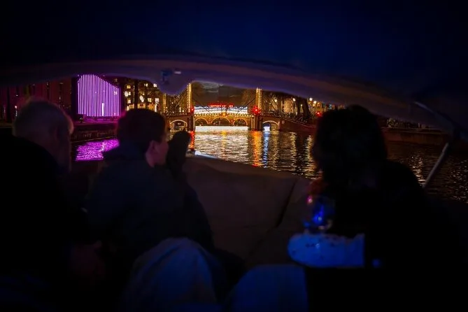 Your evening includes boarding an open electric boat with live commentary from a local guide as you follow the official festival route through Amsterdam’s canals. You’ll have access to unlimited drinks if you choose that option, plus cozy blankets for warmth along with convenient pickup before your tour begins.