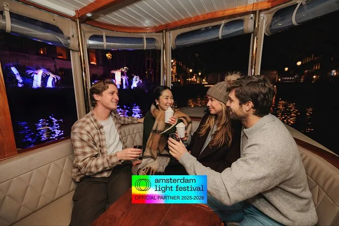 You’ll slip into Amsterdam’s winter nights aboard a classic heated boat for the Light Festival cruise, guided by locals who share stories behind each glowing artwork along the Amstel. Sip unlimited mulled wine or hot chocolate, snack on stroopwafels or salty bites, and watch as more than 20 art pieces transform familiar canals into something quietly magical.