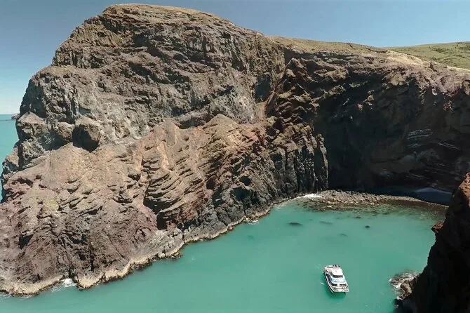 The tour departs from Akaroa Harbour on Banks Peninsula near Christchurch.