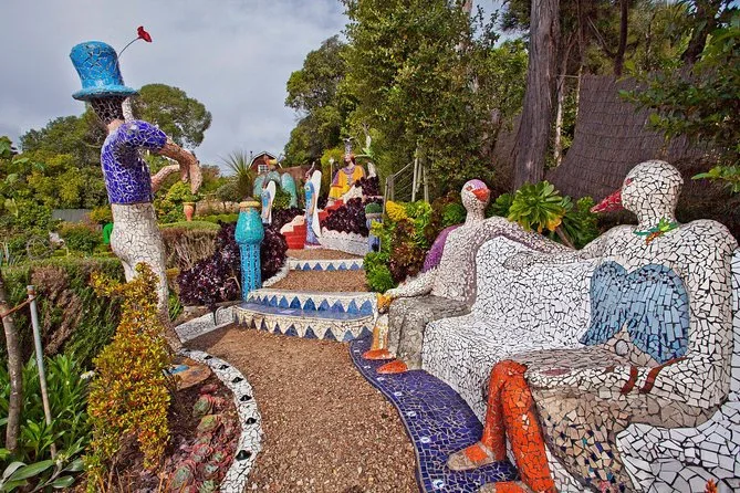 The Giants House is… hard to describe without sounding like I’m exaggerating. It’s all mosaics and bright colors — even the steps are covered in tiny tiles. Josie, our guide inside, told us stories about the artist who lives there; apparently she still adds new pieces every year. There was this moment where sunlight hit one of the sculptures just right and everything sort of glowed. I caught myself grinning for no reason at all. You can wander through on your own after if you want — or just sit on a bench and listen to birds arguing overhead.
