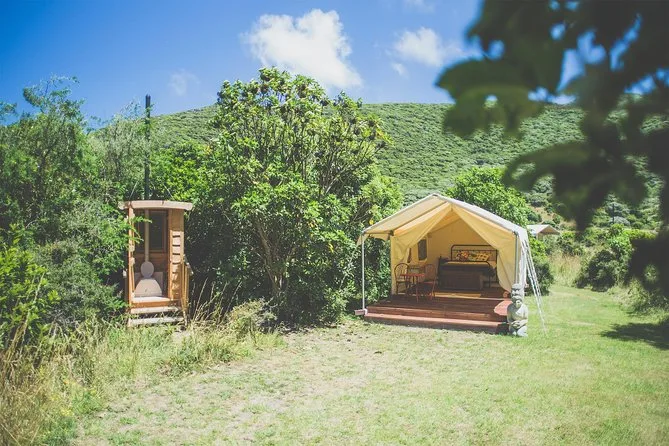 You stay overnight in comfy cabins or can choose tent/ensuite options at Waiorua Lodge.