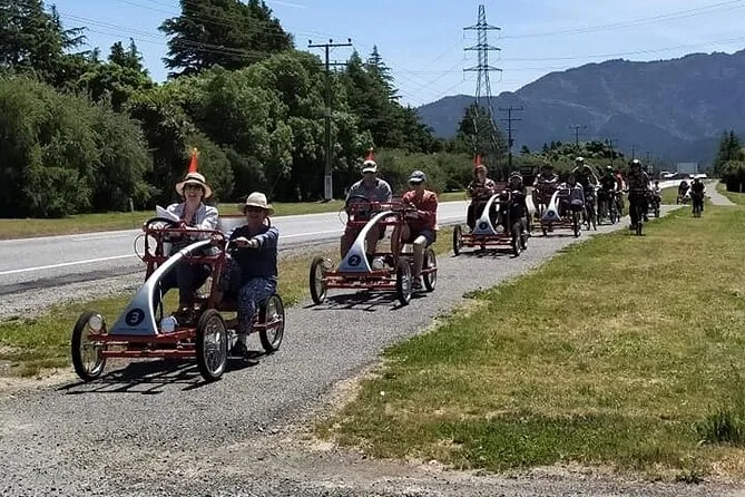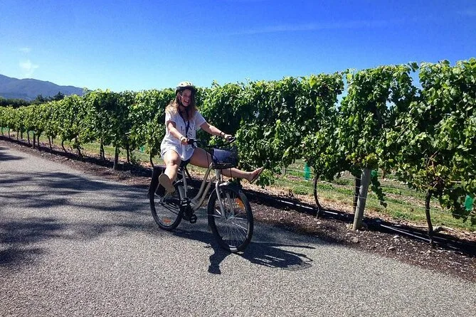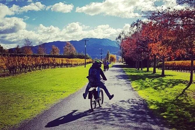 You’ll start your day in Renwick with friendly locals who’ll set you up on comfy bikes (with wine panniers!) and give you tips for exploring Marlborough’s cellar doors at your own pace. Taste local wines, snack on cheese platters under the sun, and relax knowing there’s always backup if you need it. It’s less like a tour and more like being let loose in wine country—with just enough help when you want it.