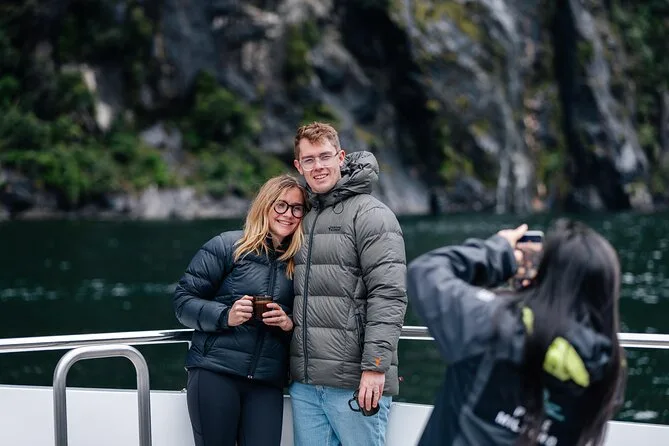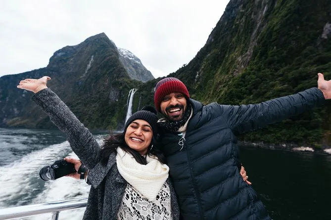 Your day includes round-trip coach travel from Queenstown with friendly guides sharing stories en route, rest breaks in Te Anau for coffee or stretching your legs, plenty of photo stops and short nature walks through Fiordland’s valleys before boarding a spacious catamaran for your scenic Milford Sound cruise with complimentary lunch and hot drinks before heading back in comfort.