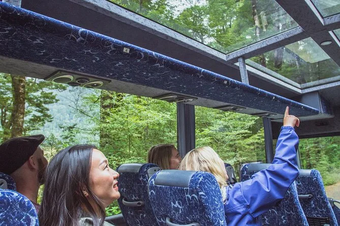 The tour includes pickup in an air-conditioned coach departing from Queenstown.