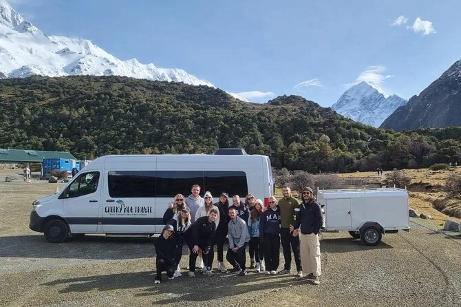 The tour lasts a full day with early morning pickup in Christchurch and evening return after visiting Mount Cook, Lake Tekapo, and more.
