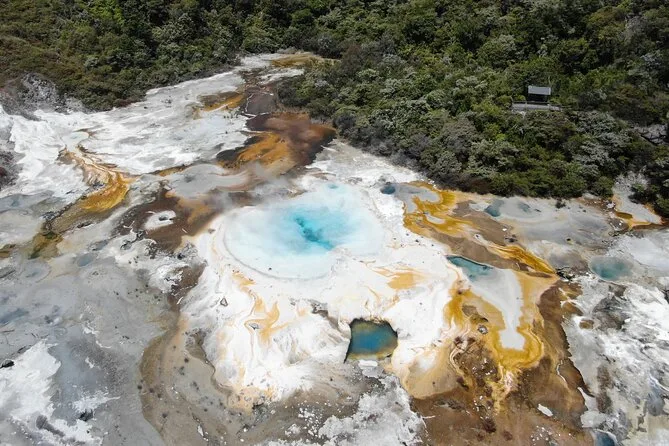 Your day includes return ferry rides on demand across Lake Ohakuri to reach Orakei Korako, entry fees for access to all walking paths and geothermal features—including silica terraces, hot springs, mud pools, native bush trails, and even that rare thermal cave—all at your own pace before catching the boat back whenever you’re ready.