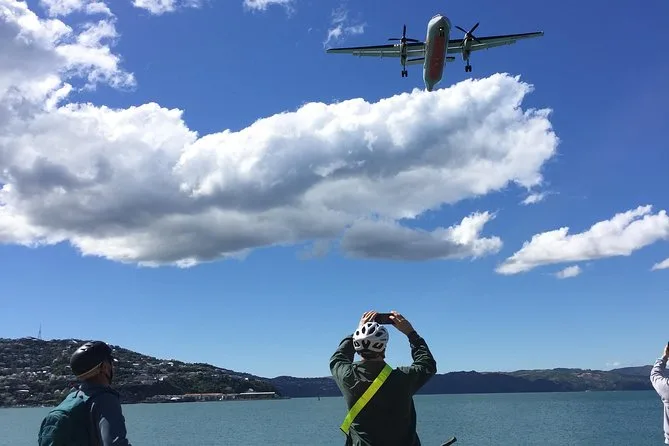 Coffee break at some little café near Cog Park—honestly can’t remember the name but my flat white tasted better after all that riding. There was this moment where we just sat looking at yachts bobbing in the harbour; everything felt sort of suspended. Later we watched this giant wind needle sculpture swaying crazily while Sam explained how Kiwis get creative with energy (I didn’t totally follow but he seemed proud). Then we rode under these funky wind sculptures toward the airport—one of those “wait, is that a plane landing right over my head?” moments.